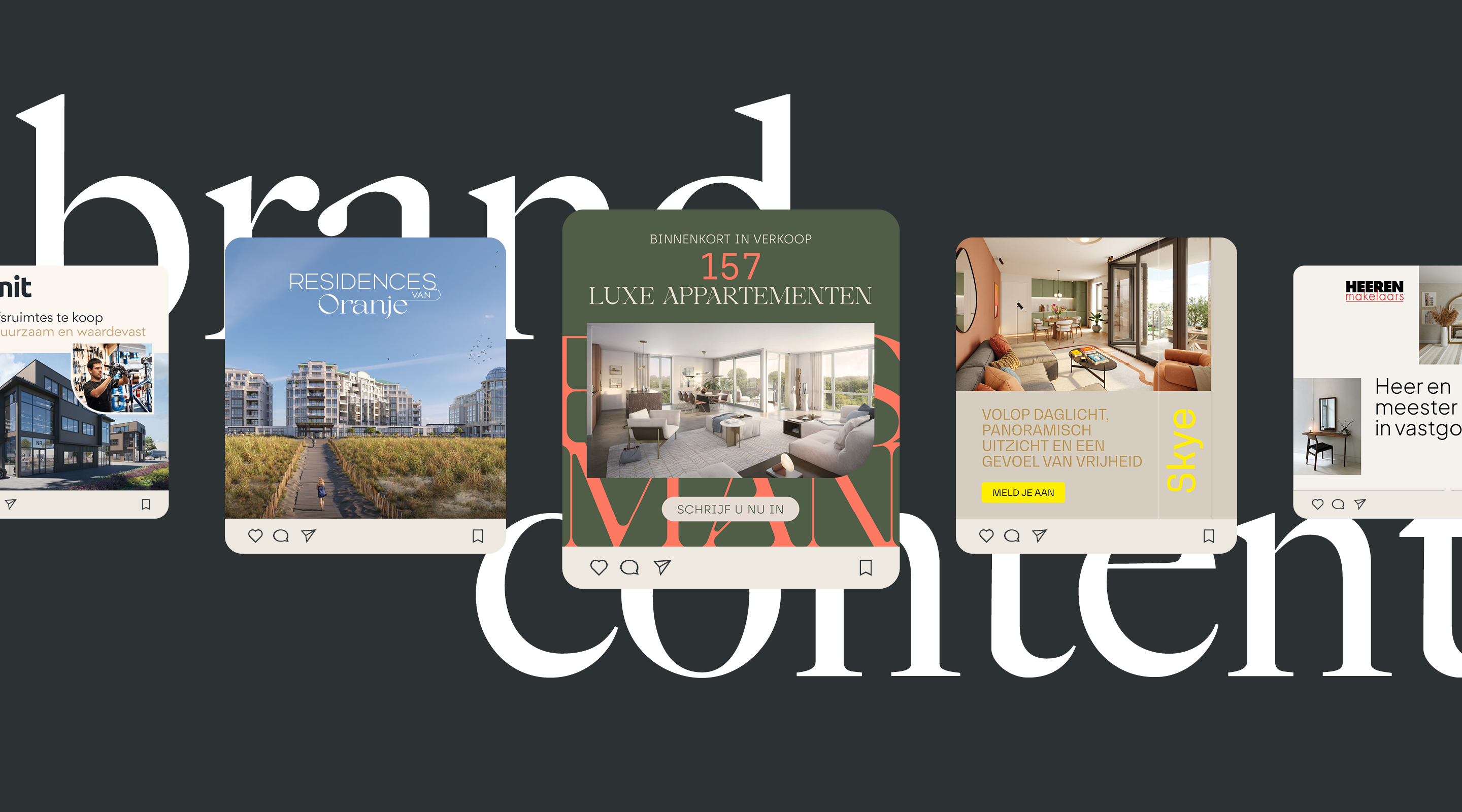 Vastgoedcommunicatie vraagt expertise. Met ervaring in gebiedsbranding, vastgoedbranding, pre-branding (voorfase start verkoop) en campagnes helpen we projecten vooruit. Van naam tot social media, wij zorgen dat alles klopt.